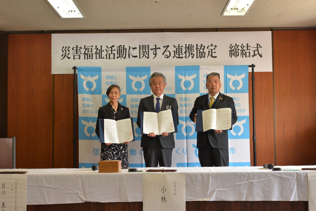 大月市とライオンズクラブ国際協会330-B地区 11R3Z 甲州富士山ライオンズクラブ様・大月市社会福祉協議会様との間で、災害時に相互連携し、災害福祉活動を迅速かつ効果的に進めるため、災害福祉活動に関する連携協定を締結しました。