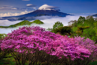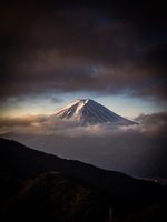 中望遠レンズを使用して縦構図により、より一層圧縮効果が強調され、富士山が手前に迫ってくるような、圧倒的な迫力を感じさせてくれる作品です。雲の動きが切れた時の一瞬のチャンスを見事に表現されています。