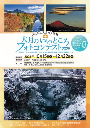 大月市の様々な魅力ある写真を募集し、写真を通じて、「大月市のいいところ」を可視化し、市内外の人々に伝えていきたいという思いから、「大月のいいところフォトコンテスト 2025」を開催しました。