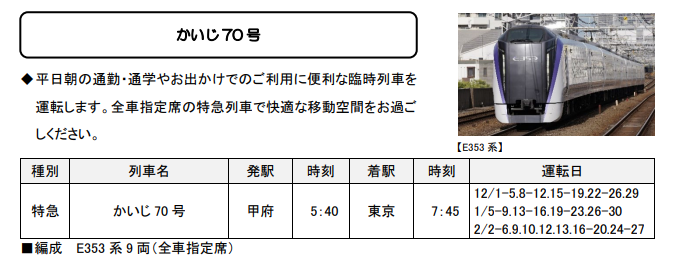 - 通勤・通学に便利な臨時特急「かいじ」が運行されます!