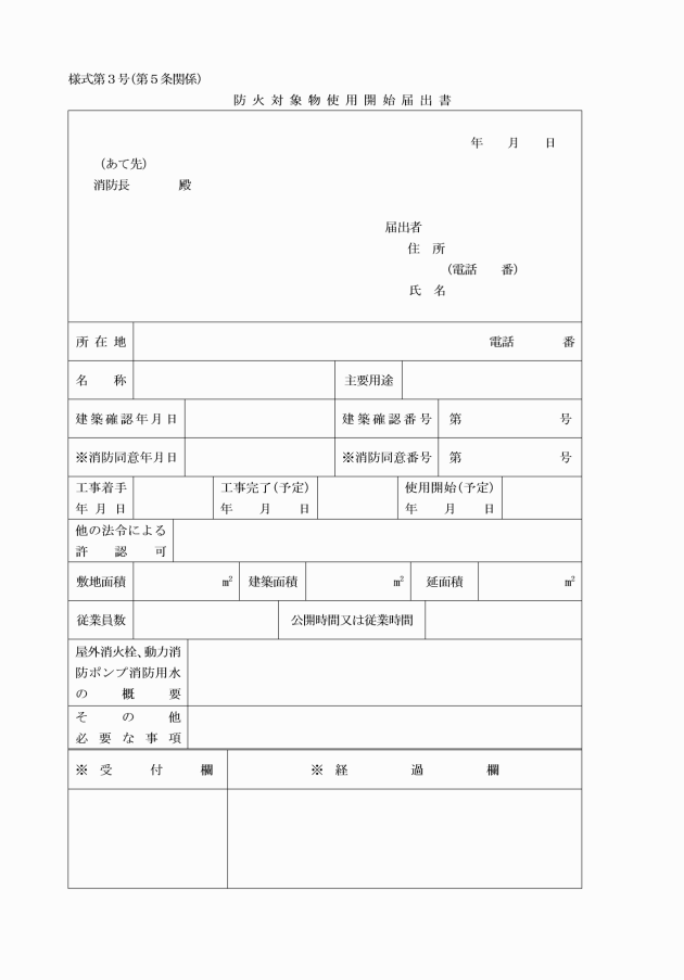 第4条 条例第42条の3第2項の規定による火災予防上必要な業務に関する計画提出書(様式第2号)に、当該業務を行う区域及び場所を記した略図を添えて、消防長に届け出なければならない。