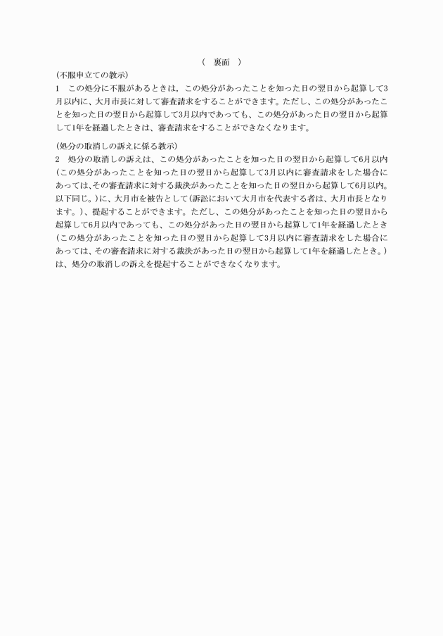 第7条 府令第7条(府令第13条第1項において準用する場合を含む。)の規定による通知は、利用料決定通知書(様式第6号)により行うものとする。
