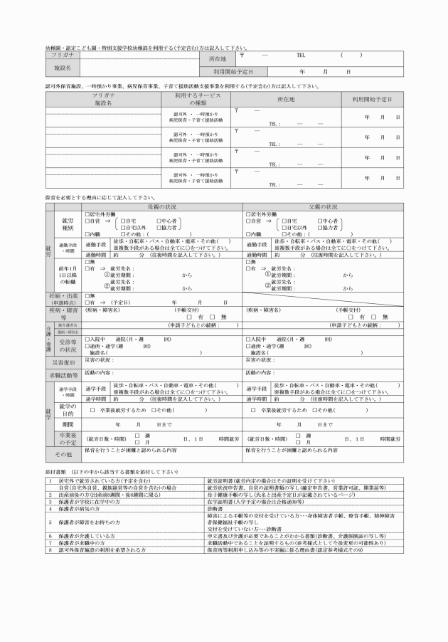第20条 府令第28条の3第1項及び府令第28条の8第1項の申請書は、法第30条の4各号に掲げる小学校就学前子どもの区分に応じ、次の各号に定めるものとする。